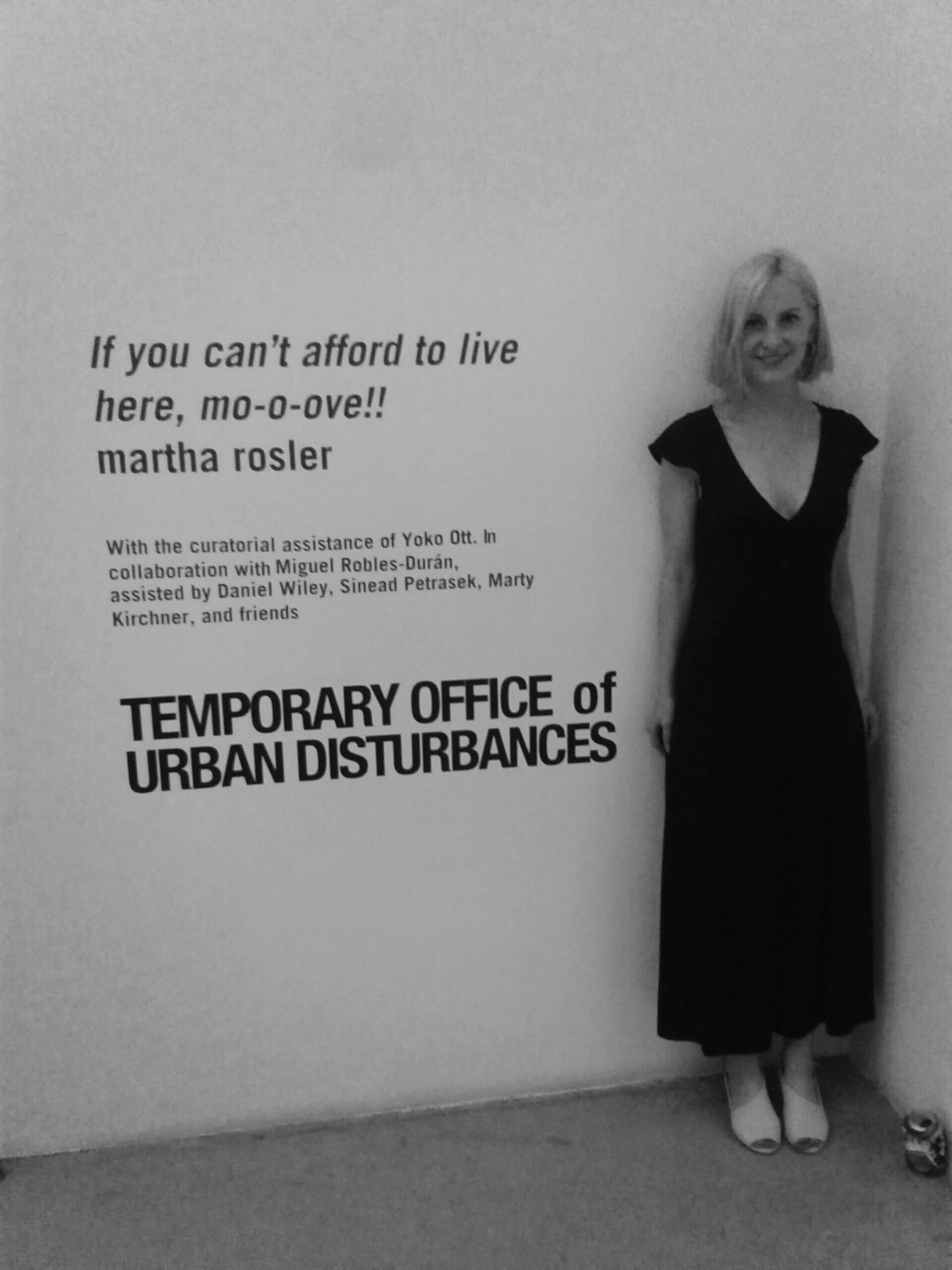 In May 2016, I began working on Martha Rosler’s exhibition, If You Can’t Afford to Live Here, Mo-o-ove! which expanded on the growing archive of films, videos, flyers, books and artworks amassed by Rosler since 1989. This unique and extensive collection documents tenant movements, gentrification, urban development, and homelessness in New York City. I organized four town hall events that generated important discussion among New York-based activists, scholars, artists and community organizers about issues facing urban dwellers, including urban planner Peter Marcuse, who was quoted on one of the gallery walls: “Homelessness exists not because the system is not working, but because this is the way it works.” My role with these town hall forums led to a significant opportunity for me to work on numerous additional public events and exhibitions with cultural producers around the world as a Project Manager with Martha Rosler in her studio in New York.